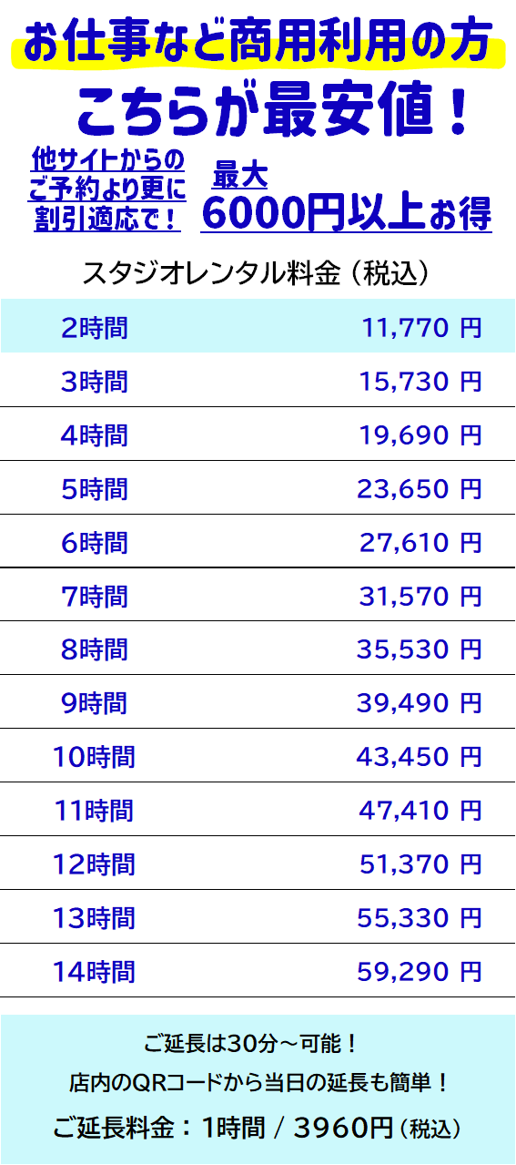 ■ 当スタジオは仮予約ができません。必ず日時を決めてからご予約ください。