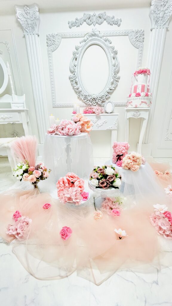 【小倉店】白とピンクのお姫様部屋や天蓋など、かわいいがギュッと詰まった撮影スタジオ北九州市内にある2時間7,920円からレンタルできる格安貸切りレンタル撮影スタジオ姫スタジオです。